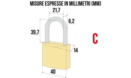 lucchetto in ottone massiccio con arco medio in acciaio temperato. chiavi riproducibili. livello di sicurezza: medio. principalmente utilizzato nel settore dell’arredamento e della sicurezza